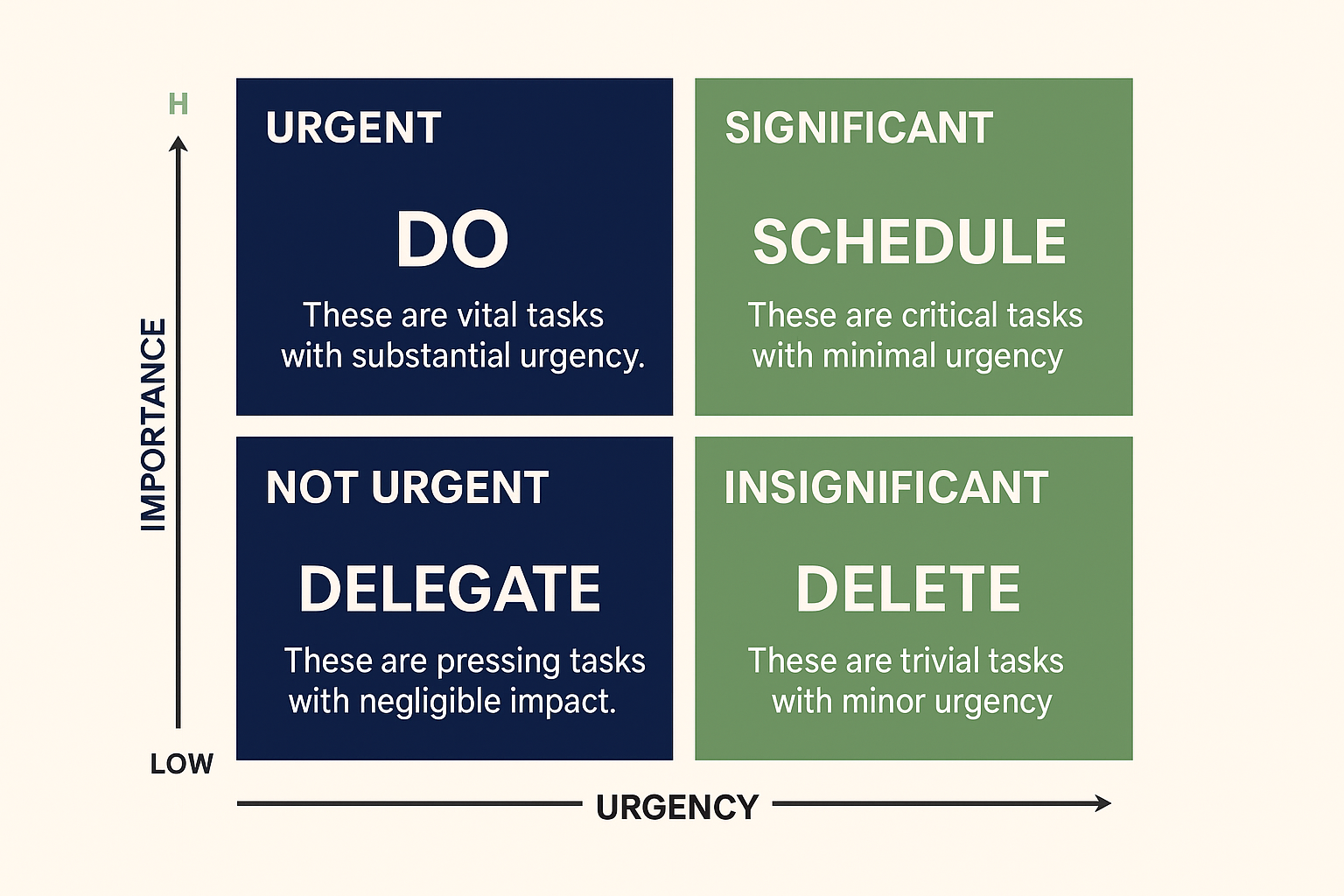 De Eisenhower Matrix is inmiddels een begrip waar niemand meer omheen kan. Het wordt vaak aangehaald, breed omarmd als idee, maar zelden echt toegepast. En dat is begrijpelijk. In de hectiek van alledag is het lastig om de rust te vinden om verder vooruit te kijken dan de komende drie maanden. Er moet een rapport af, een klant binnengehaald, kwartaaldoelen gehaald. De druk van het nu laat weinig ruimte voor het belangrijk-maar-niet-urgente.